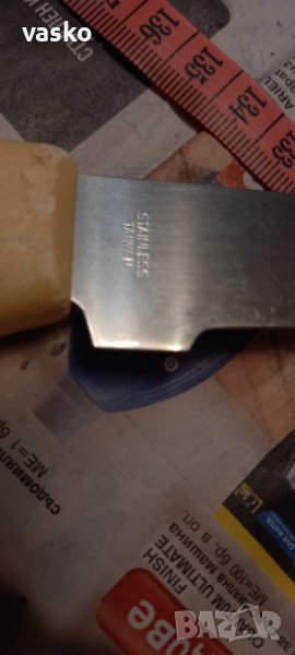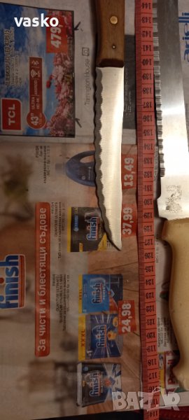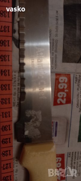 Продавам двата ножа от снимките-малкия с дървената дръжка е OMEGA SOLINGEN,стар,маркиран, германски+големия ,ATLANTIC CHEF made in TAIWAN,много жилава стомана,пластмасова дръжка.ЦЕНАТА Е ЗА ДВАТА!МНОГО КАЧЕСТВЕНИ!