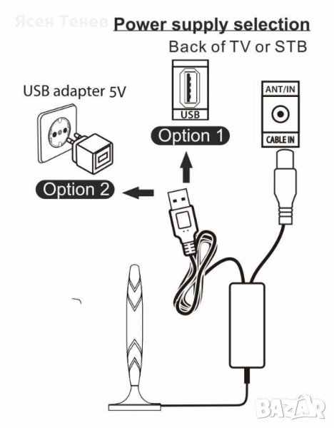 Стайна, активна ефирна DVB-T/T2 антена за цифрова ефирна телевизия с вграден усилвател.