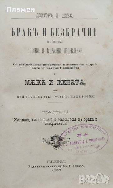 Съ най-любопитни исторически и медицински подробности за взаимните отношение на мъжа и жената отъ най-дъбока древность до наше време -издание 1894-1897г. с твърди корици в 288 страници общо -23 евро.