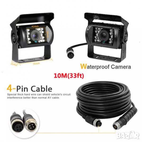 Висококачествена водоустойчива, удароустойчива камера за задно виждане за камиони, бусове, трактори, комбайни, автобуси и др. - включен 10 метров водоустойчив кабел в комплекта.