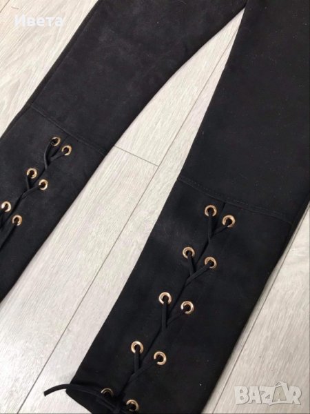Дамски панталон от велур. Много приятен на допир. Отзад долу на краката има връзки. Стои много различно и красиво
