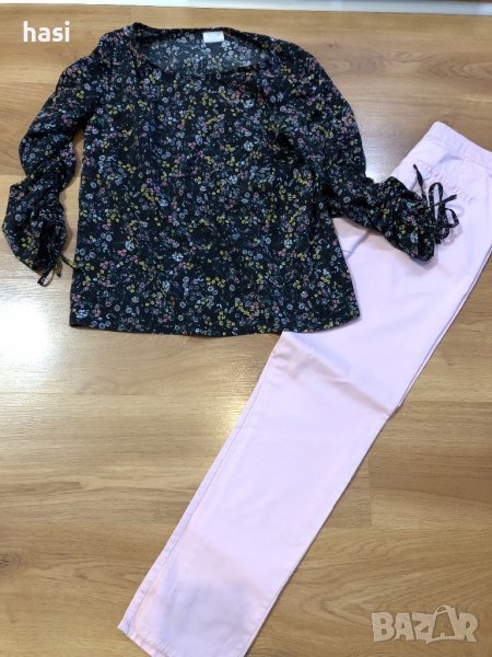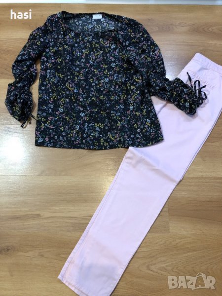 Риза с набрани ръкави, без забележки. - цена 15 лв.Панталон светло розов размер 34 без забележки цена 15 лв