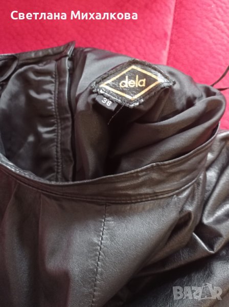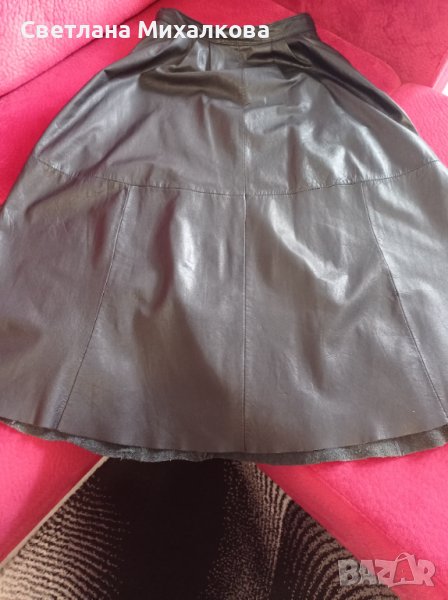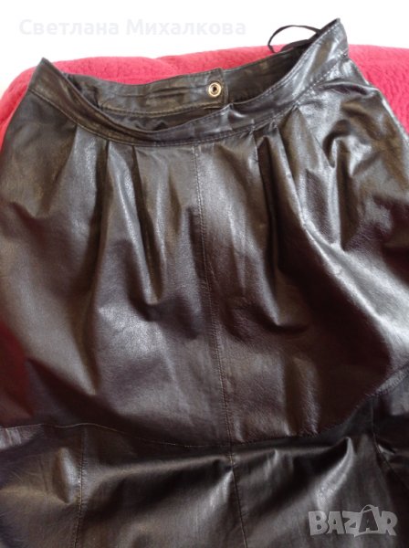 Продавам кожена пола, изкуствена кожа с подплата и два странични джоба, обиколката на талия 70 см, дължината 73см запазена и без следи от употреба