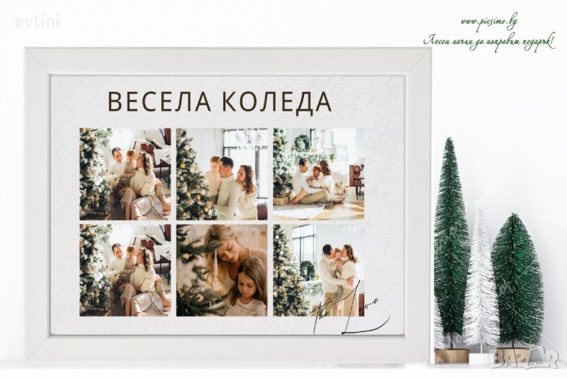 Всеки колаж е изработен на високачествена гланцирана фотохартия размер 21х30 с включена в цената бяла масивна рамка