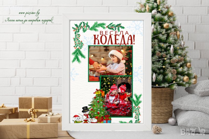 Всеки колаж е изработен на високачествена гланцирана фотохартия размер 21х30 с включена в цената бяла масивна рамка
