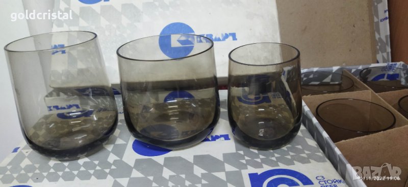 Стъклени чаши на Кварц Стойко Пеев Белослав за ракия 5+1бр-10лв 5€ за уиски в кутия 6бр-29лв 15€ за вода 6бр-39лв 20€ сервиз комплект сет лот ретро арт декор винтидж колекция стари антикварни предмети обзавеждане за дома и семейството подходящи за подарък за ценители и колекционери