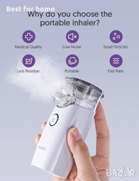 Инхалатор HYLOGY Nebulizer, Hltra-Quiet Home Medical Device, ръчен автоматичен парен инхалатор с USB кабл и батерии, атомизирани частици и ултразвукова технология