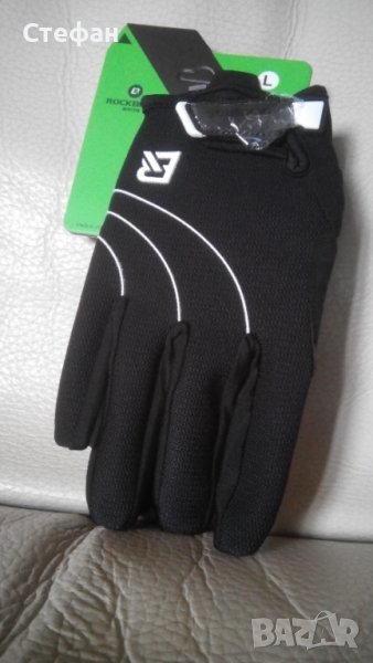 Нови ръкавици за велосипедиране.Водонепромокаеми,дишаща материя,гел антишок на дланта,еластични,опция тъч скрийн на пръстите,за есенно пролетно време.Размер L. Material: Cotton, Lycra, Nylon.Fit: Cycling, Riding, Fishing, Hiking, Skiing, Running, Outdoor Sport.