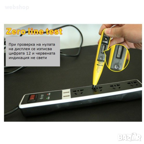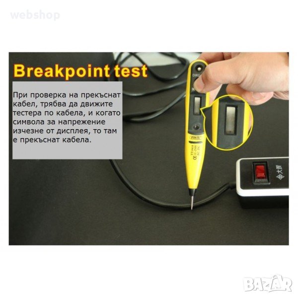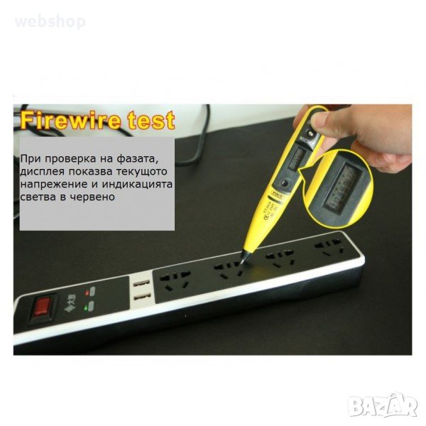 Директно измерване - чрез допир до проводник или елемент под напрежение и натискате бутона "Direct test"