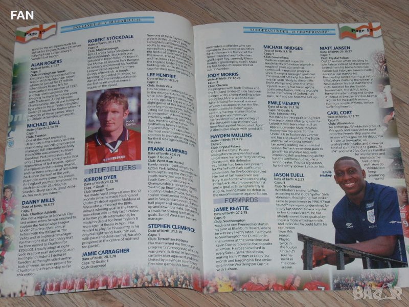 Англия - България до 21 г. футболна програма 1998 квалификация за ЕП до 21г. с уч. на Стилиян Петров
