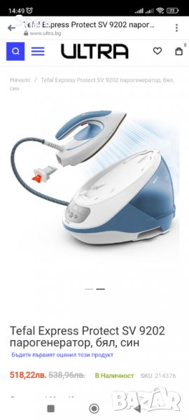 Парна ютияTefal Express Protect SV9202, 7.5 бара
