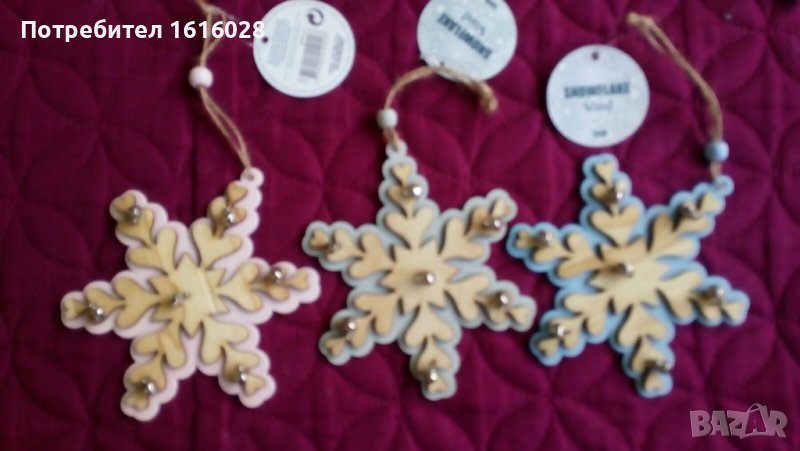 Нови дървенни Коледни играчки със звънчета подходящи за украса на Коледната елха или декорация за вашия дом,салон,ателие или магазин.
