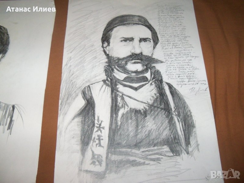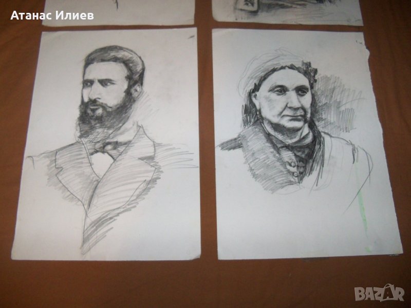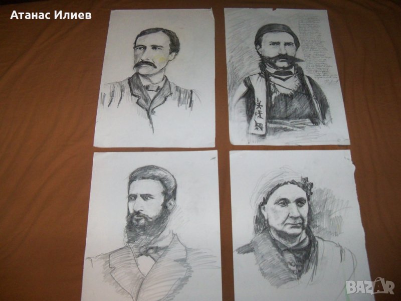 Лот от 4 портрета: Панайот Хитов, Георги Раковски, Христо Ботев и Иванка Ботева- майка на Христо Ботев. Портретите са изпълнени с молив от художничката Десислава Илиева. Не са подписани. Размерите им са 50х35 см.