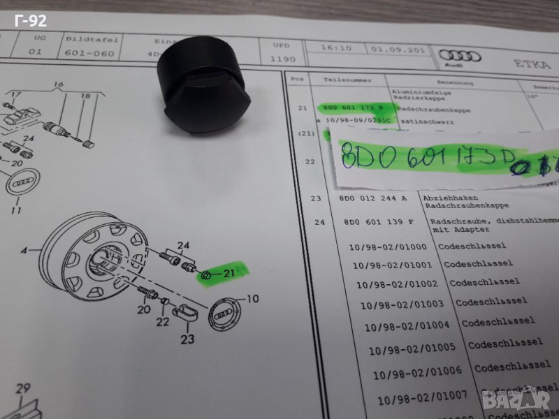 8D0601173B/01C**NEU**VAG**КАПАЧЕ ЗА БОЛТ НА ДЖАНТА**