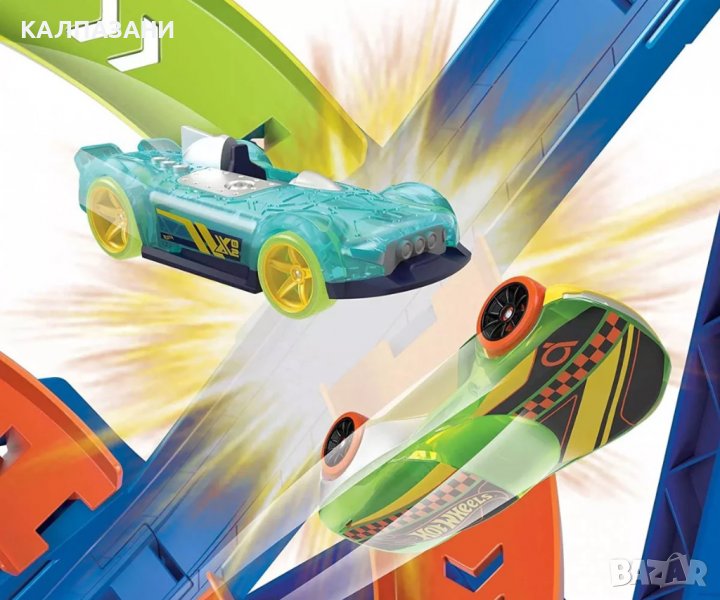 включената в комплекта количка Hot Wheels® до механизма за изстрелване