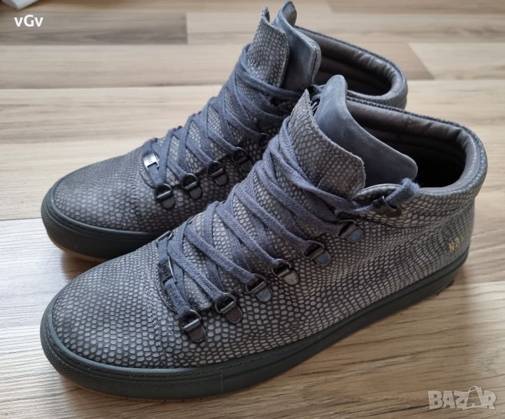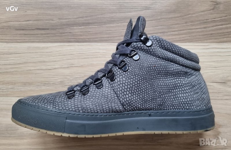 Уникални мъжки кожени кецове на марката Nubikk от серията Lizard . Цвят - Сиви . Взимни за над 440 лв и носени броени пъти . Естествена кожа , супер гъзарски и стилен модел . Номер 41 . Дължина на стелката 26,5 см .