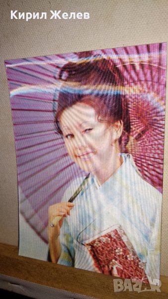СТАРА РЯДКА СТЕРЕОСКОПИЧНА ЯПОНСКА ПОЩЕНСКА КАРТИЧКА НАМИГАЩО МОМИЧЕ с ЧАДЪРЧЕ 6421