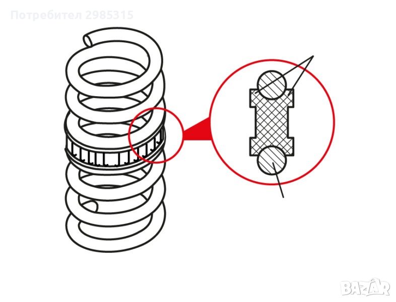 Буферите на спиралните пружини са гумени елементи, монтирани между витките на пружините, които втвърдяват окачването и увеличават стабилността му. Буферите са направени от подходяща каучукова смес. Те имат специален канал, който улеснява стабилното закрепване между витките на пружините без използването на допълнителни монтажни елементи.