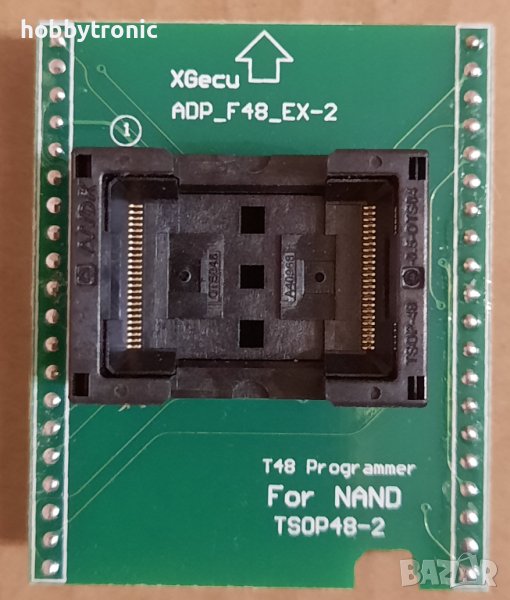 It can work on: XGecu T56 / T48 / TL866IIPlus / TL866A / TL866CS, All willem, GQ-4X, TOP, TNM2000/TNM5000/YNM7000, EasyPro, SuperPRO programmers and other universal programmers with 40 or 48 pin ZIF socket.
