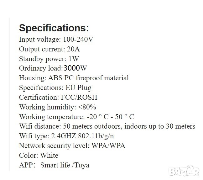 Управлява се през мобилен телефон, приложения: Smart Life за iOS / Android.