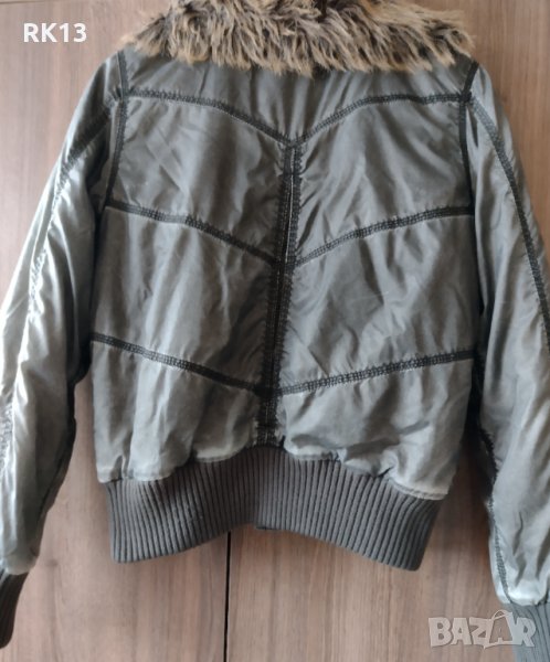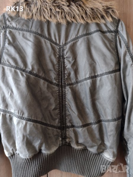 Якето е запазено. Закопчава се с цип и копчета. С ефектна яка.