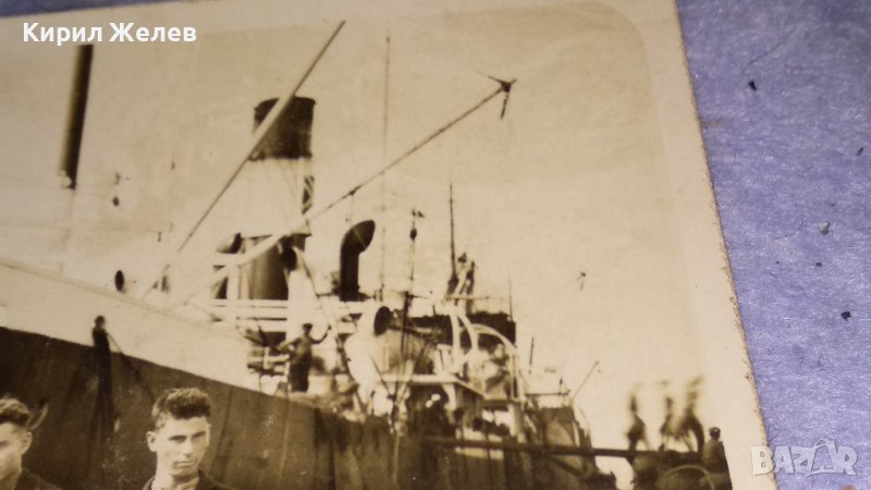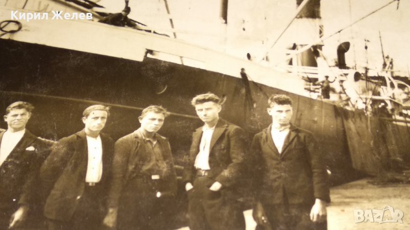 1931г. Гр. БУРГАС Стара СНИМКА - ПОЩЕНСКА КАРТИЧКА за СПОМЕН на 5-ма ДЖЕНТЪЛМЕНИ пред ПАРАХОД 32832
