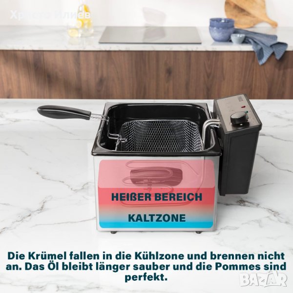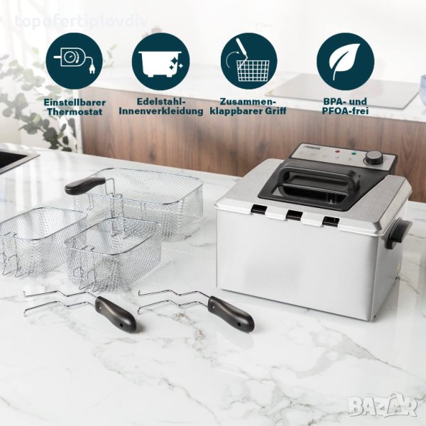 ползвам броени пъти. като нова . Внос от Германия.Пригответе вкусни закуски или хрупкави гарнитури и храна за 6-7 души в практичния двоен фритюрник на PrincessФритюрникът е с вместимост 5 литра и е оборудван с две индивидуални и една по-голяма кошници за пържене, както и капак за предпазване от пръскиУредът е с мощност 3270 вата и е оборудван с термостат, който ви позволява да регулирате точно температурата и винаги да имате перфектната температура за приготвяне на желаната хранаСтудената зона в долната част на уреда предотвратява изгарянето на трохи, падащи през коша. Това запазва маслото без вкус и чисто, така че можете да го използвате отновоФритюрникът може да бъде напълно разглобен и следователно лесен за почистване. Частите на уреда могат да се мият в съдомиялна машина.