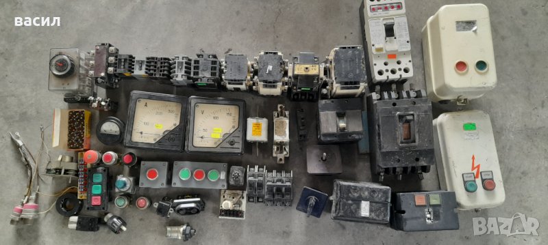 много видове ел.части .контактори,защити.автоматични прекъсвачи,въздушни прекъсвачи,диоди,бутони и други.обадете се за коментар.
