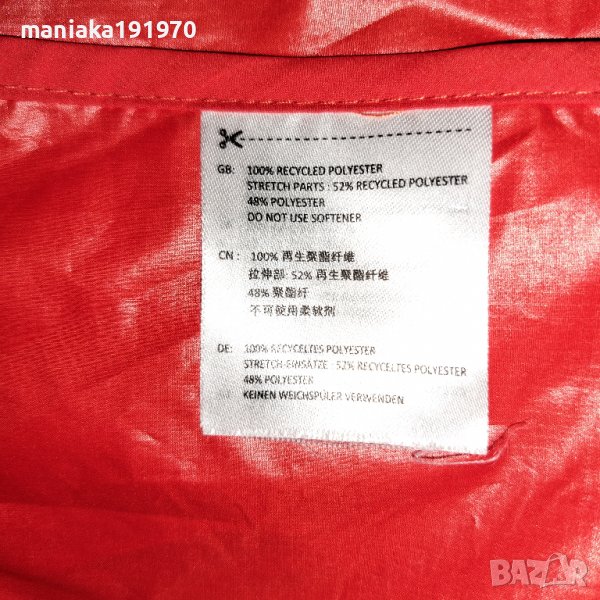Изключително леко яке с възможност за компресиране в предния джоб. Силно ветро- и водоустойчиво, но много дишащо. Немембранен панел FlexAble™ за гърба и подмишниците за максимална дишаемост и лекота на движение. DWR третирани повърхности. Джоб на гърдите с цип, в който може да се съхранява якето. Заден скриващ джоб с цип. Подплатен капак от ламинирано трико и предпазител за брадичката зад предния цип. Висока яка с подплата от трико за допълнителен комфорт и защита от студ. Еластични маншети на ръкавите с халки за палците. Шарнирни ръкави. Регулируема с една ръка еластична талия. Светлоотразителни детайли; отпред, отзад и отстрани.Цвят , като на първата снимка.В перфектно състояние!
