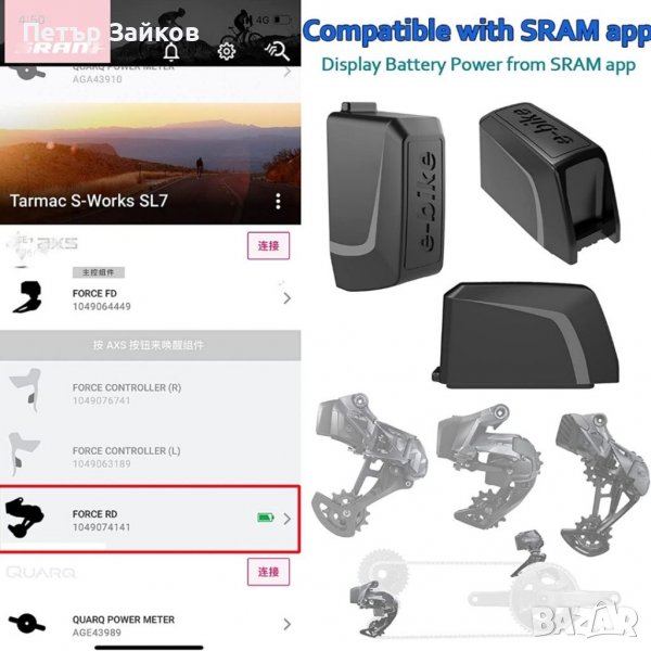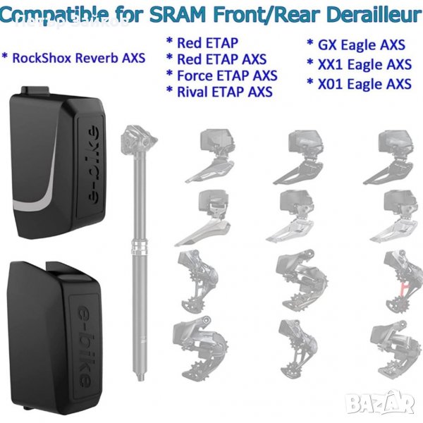 * Безпроблемна съвместимост с GPS велосипеден компютър и свързано приложение SRAM за показване на заряда на батерията