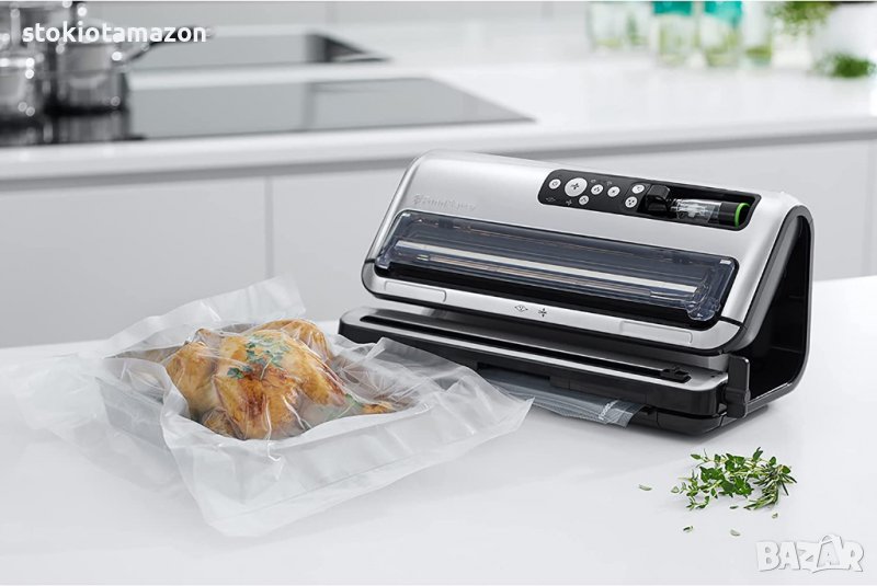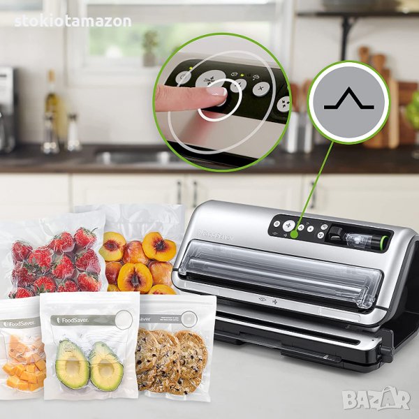 С FoodSaver FFS006X вакумирането на храна става напълно автоматично: просто поставете вакуумната торбичка в слота и уредът регулира настройките, вакумира и уплътнява, всичко автоматично. Неговата система за откриване на течности предотвратява изтичане на течност, а включената функция мариноване овкусява храната само за няколко минути, спестявайки време за приготвяне на ястието. Освен това дизайнът е гъвкав, не заема много място и е подходящ за всички кухни, независимо от размера.
