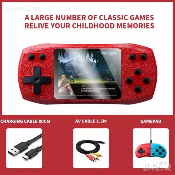 Конзолата съдържа над 600 класически игри, матирани меки бутони, тънко тяло, 6 часа продължителна игра с едно зареждане и може да се свърже към телевизор с кабела в комплекта.