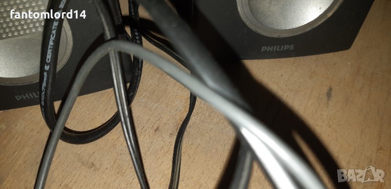 Озвучаване за компютър-тонколонки,кабели и мишка.Марката на говорителите е Филипс.Всичко работи отлично.