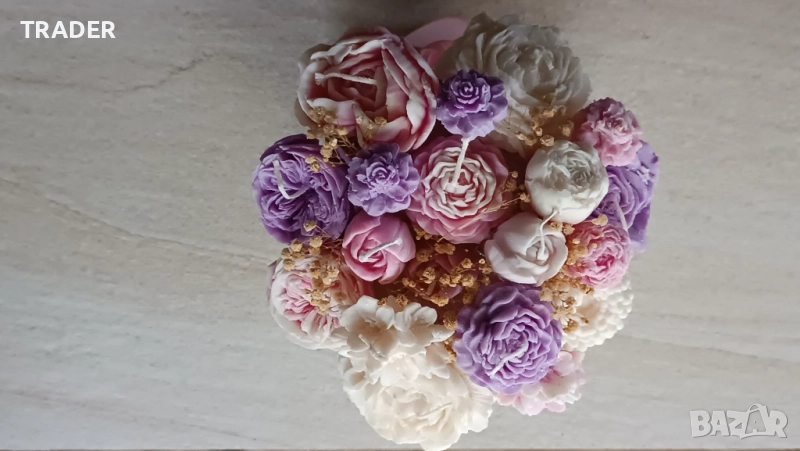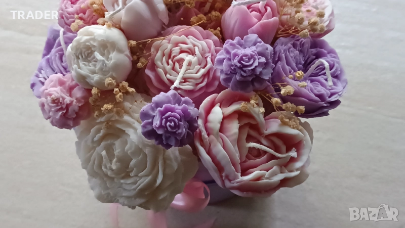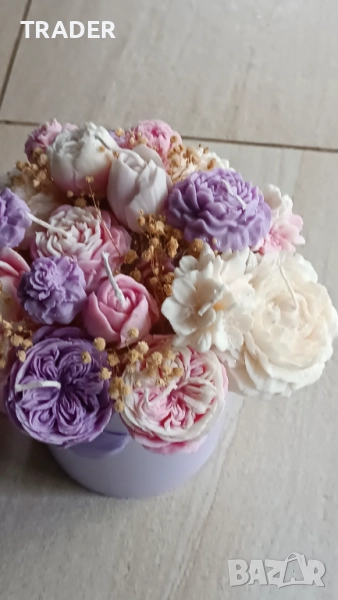 Букет от ароматни соеви свещи под формата на цветя → Обява 38844787