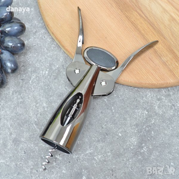 Метален тирбушон с лостов механизъм. Перфектен за изваждане на коркови тапи от бутилки. С помощта на този изискан тирбушон вече няма да имате проблеми с усукани тапи, а стилният дизайн на тирбушона определено ще се впише в интериора на вашата кухня.