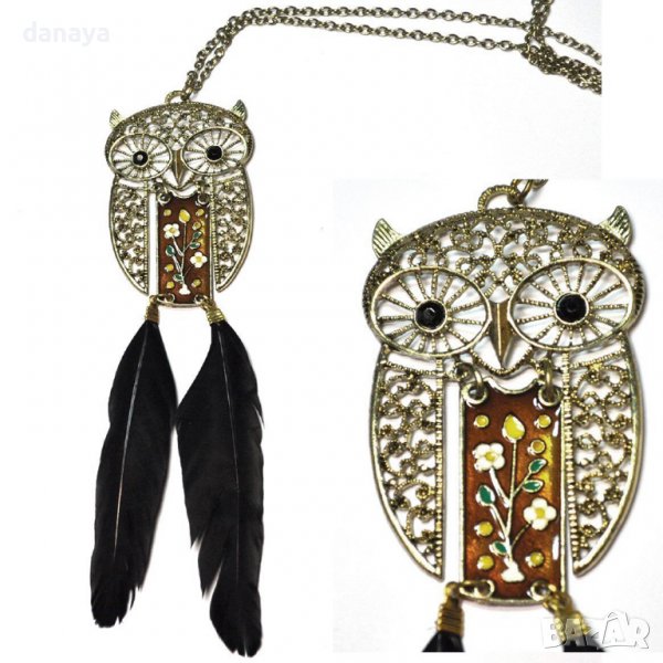 3284 Дълго винтидж колие Бухал с пера → Обява 38847925