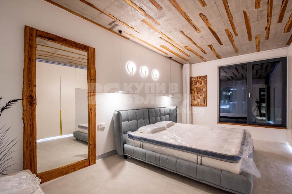 Дизайнът е уникален - Модерен и предизвикателен с посланието на автономност, релакс и морска атмосфера. В бетоновите плочи по тавана на апартамента са вградени естествени дървени орнаменти от акация. Тухлените стени и бетонът са използвани за естествена декорация, като са допълнително обработени, импрегнирани и грундирани. Луксозно обзаведен, с мебели, кухня, дивани, атрактивни плочки, осветителни тела - всички са на известни италиански марки.