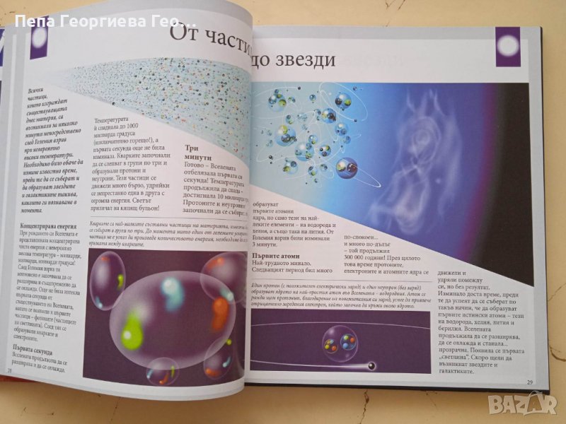 Красиво илюстрирана енциклопедия.Ще получите знания за чудесата на Вселената: Как е възникнала? Преди колко милиарда години? Какви невероятни космически обекти съществуват в нея? Възможно ли е цялата видима и невидима материя в галактиките да се е появила от една малка точица по времето на Големия взрив?..