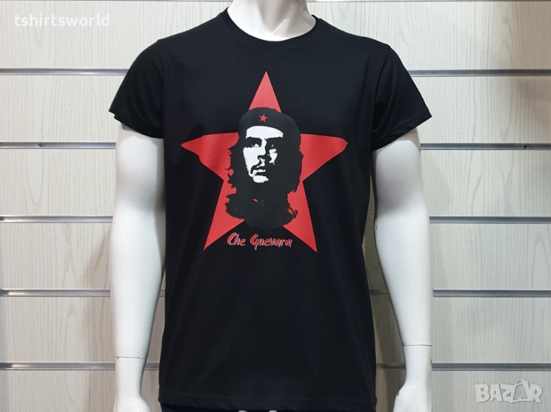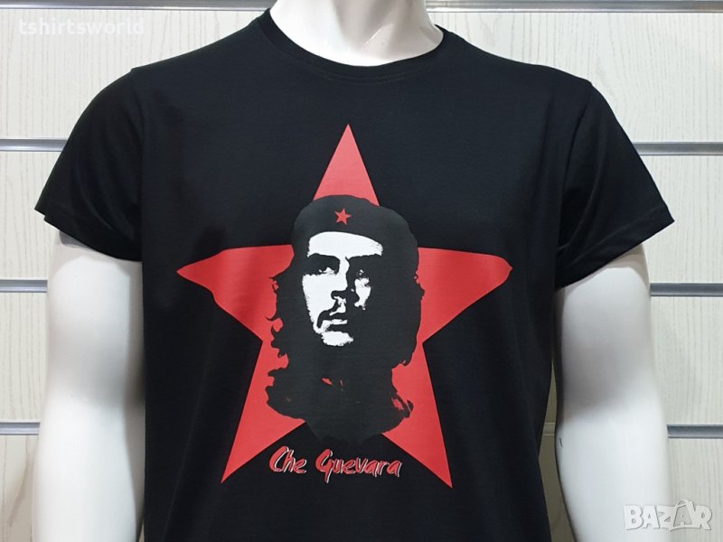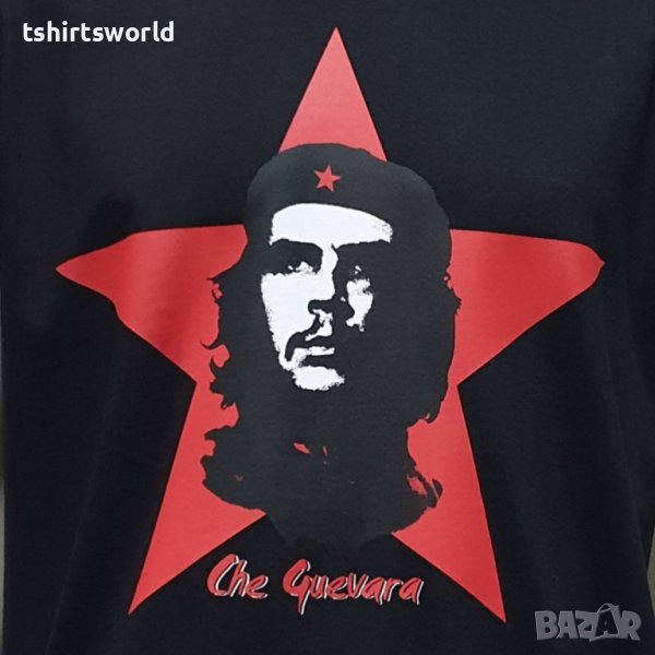 мъжка тениска в черен цвят със символичен трансферен печат на революционера Че Гевара- Звезда. Тениската е изработена в България под марката PRINTEX от висококачествен 100% пениран памук на 170 гр./м², който запазва цялостта на материята и наситеността на цветовете на черното трико дълго време. С удобна кройка, тениската е свободна и позволява максимален комфорт при носене. Професионално изработен висококачествен трансферен печат, устойчив на пране с години. Тениската може да се пере при температура до 40 градуса. Спокойно можем да гарантираме за качеството на изработката и ярките цветове на дизайна.