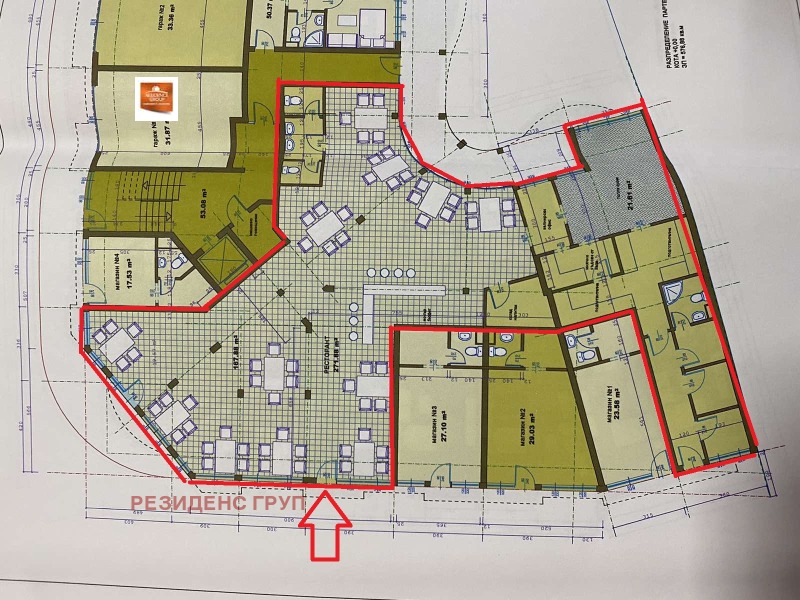 Агенция на недвижими имоти РЕЗИДЕНС ГРУП - гр. Поморие предлага просторно търговско помещение със статут на ресторант, находящо се на партерен етаж в нова жилищна сграда в широкият център на гр. Поморие, до големият паркинг и светофара.
