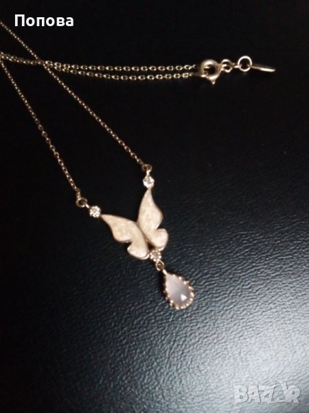 Уникално златно колие с розов кварц и пеперуда с емайл розово злато → Обява 38851873