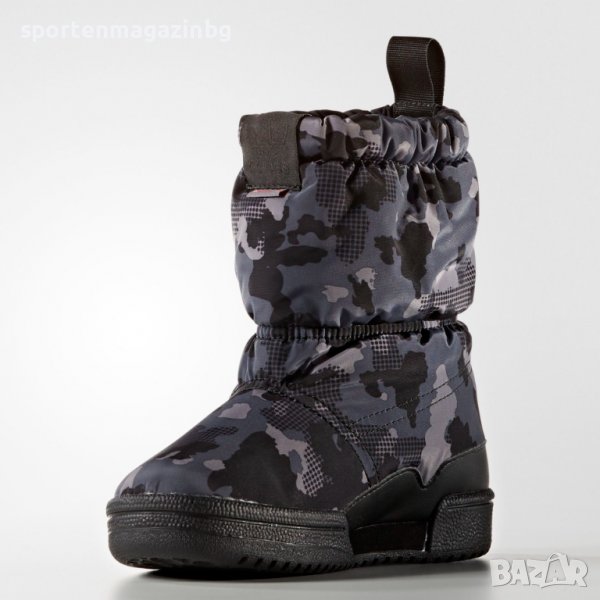 Водоотблъскващо външно покритие с модерен, цялостен комуфлажен печат. Еластичният маншет в горната част приляга плътно, предотвратявайки проникването на сняг. Елестична средна част за по лесто обуване, събуване и по добро прилягане. Кука в задната част за по лесно обуване. Лого Adidas Originals в предната част. Изолационен материал PrimaLoft® затопля отлично и не позволява на краката да се намокрят. Пореста стелка OrthoLite® с антимикробно покритие за превъзходно отстраняване на влагата, подпомага циркулацията на въздуха и изпълнява антибактериална функция.