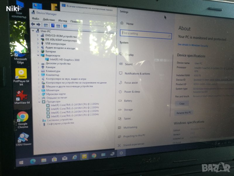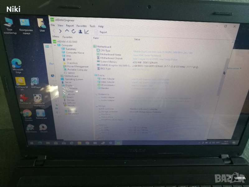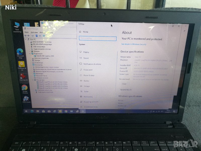 Продавам работещ лаптоп Asus X54 на процесор Intel Core i5-2410M с HDMI изxoдa. Лаптоп е подходящ както за бизнес, така и за дома. Лаптоп работи бързо и тихо, изчистен напълно и подменена термопаста за процесор и видео. Използваем е за музика, HD филми, интернет. Има козметични забележки по корпуса лаптопа, видими от снимките, не пречещи за работа, цената е съобразена с тях. Машинката беше купена за работа в офис, но поради стечения на обстоятелствата сега остана неизползвана. Перфектен за офис, домашна работа или обучение.