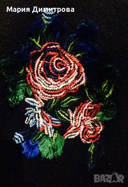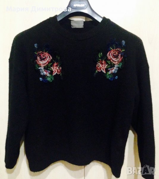 Пуловер подходящ за сезона с бродирани рози. Черен с норнална разтегливост, без следи от употреба.