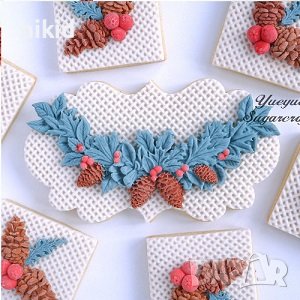 есенни листа клон със шишарки силиконов молд форма фондан декор шоколад гипс → Обява 38857744