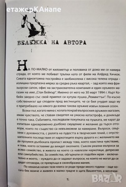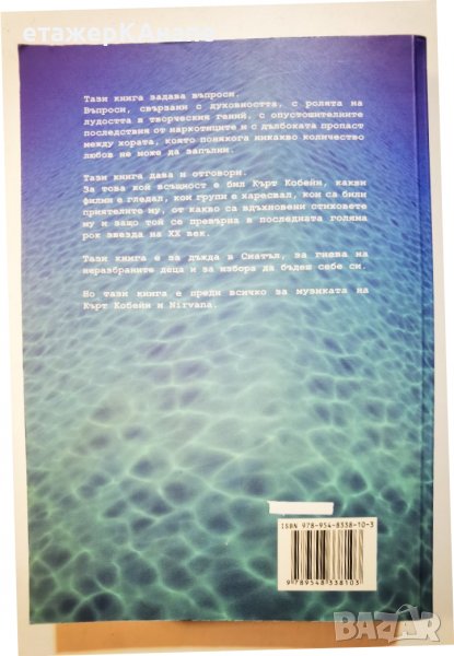 Книгата на музикалният автор и специалист по звука на американския Северозапад Чарлс Р. Крос – „NIRVANA Биографията на Кърт Кобейн”, – която издателство „Махалото” има удоволствието да представи на българският читател, представлява всепризнато най-изчерпателния и сериозен поглед върху живота на Кобейн. Тя разказва неговата история – за детството, за творчеството, за вдъхновението и за демоните му – без да го съди. Зад текста стоят четири години проучвания, над 400 интервюта, безброй папки с документи, стотици музикални записи, безкрайни безсънни нощи и много километри, навъртени между Сиатъл и Абърдийн. Емоционалният заряд на биографията е подсилен от повече от 80 архивни фотографии на Кърт Кобейн, неговото семейство, приятелите му и групата, а достъпът на автора до дневниците и личните му записки я превръща в автентично свидетелство за един живот, изпълнен с много талант и възможности, но засенчен от непоправима тъга и трагично завършил без време.