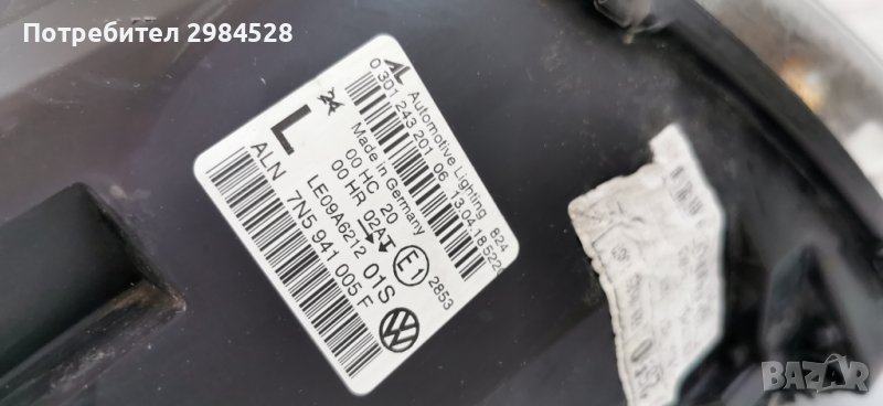 Оригинален ляв фар за Seat Alhambra / VW Sharan - Халогенен, стъкло в много добро състояние, малък лепен участър на корпуса, два счупени и един здрав захват (виждат се на снимките).