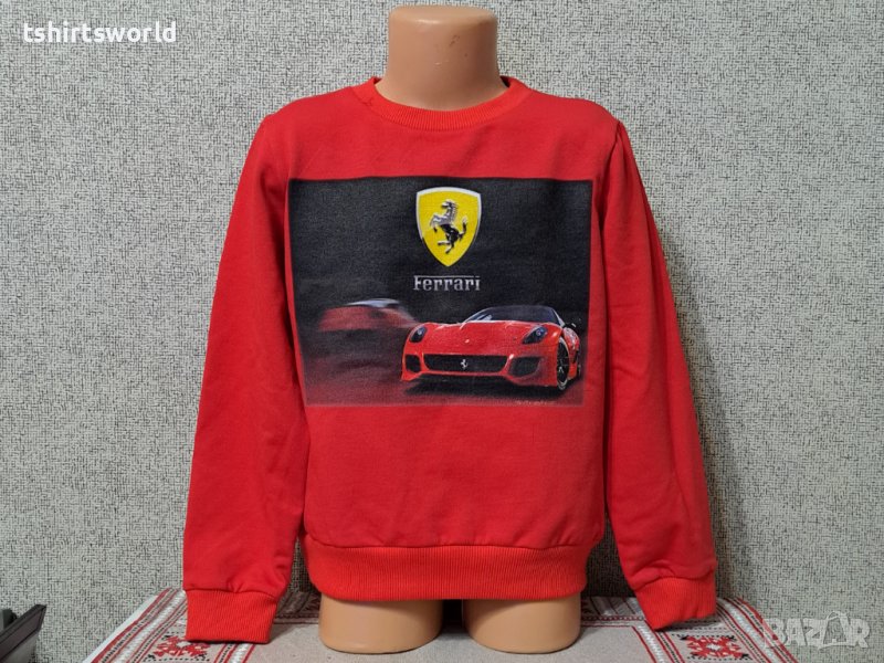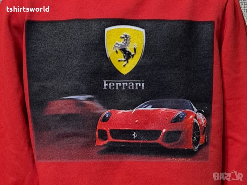 дигитален печат Ferrari. Блузата е изработена в България под марката PRINTEX от висококачествен 100% пениран памук, който запазва цялостта на материята и наситеността на цветовете дълго време. С удобна кройка, блузата е свободна и позволява максимален комфорт при носене. Професионално изработен висококачествен дигитален печат, устойчив на пране с години. Блузата може да се пере при температура до 40 градуса. Спокойно можем да гарантираме за качеството на изработката и ярките цветове на дизайна.