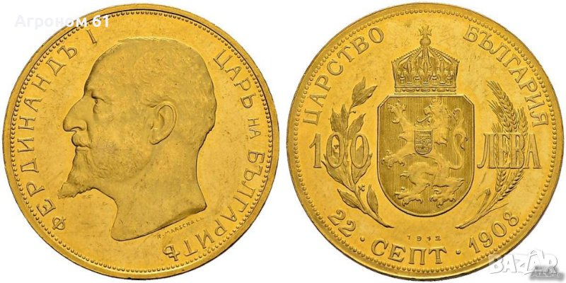Лот 20 и 100 лева 1912 г Цар Фердинанд-24к позлатени реплики. - Цена 13 евро