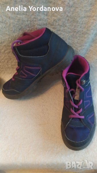 2. Quechua от Decathlon - тъмносини с лилави орнаменти, туристически обувки № 36 - цена 20 лв. дължина на стелката - 22,5 см материали - изкуствена кожа и синтетика.
